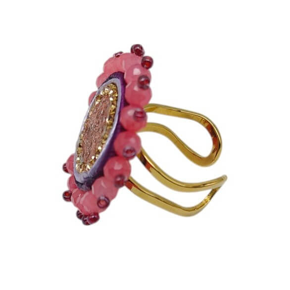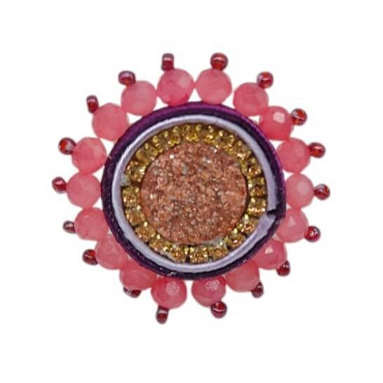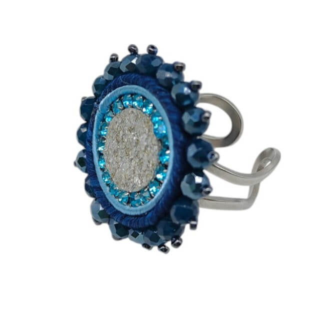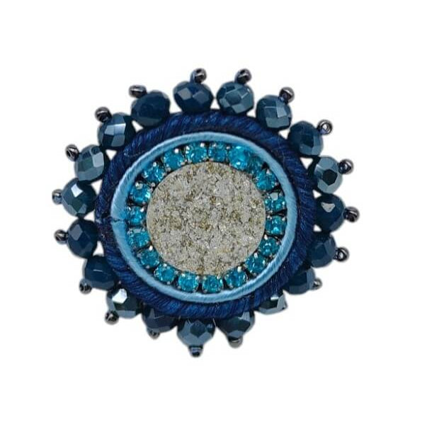 El soutache es una técnica artesanal de bordado que utiliza cordones finos y flexibles que se cosen alrededor de piedras, cristales (como Swarovski o checos) y perlas. Esto crea piezas con volumen, textura y colores vibrantes. El resultado son joyas únicas, ligeras y con un acabado muy elegante.