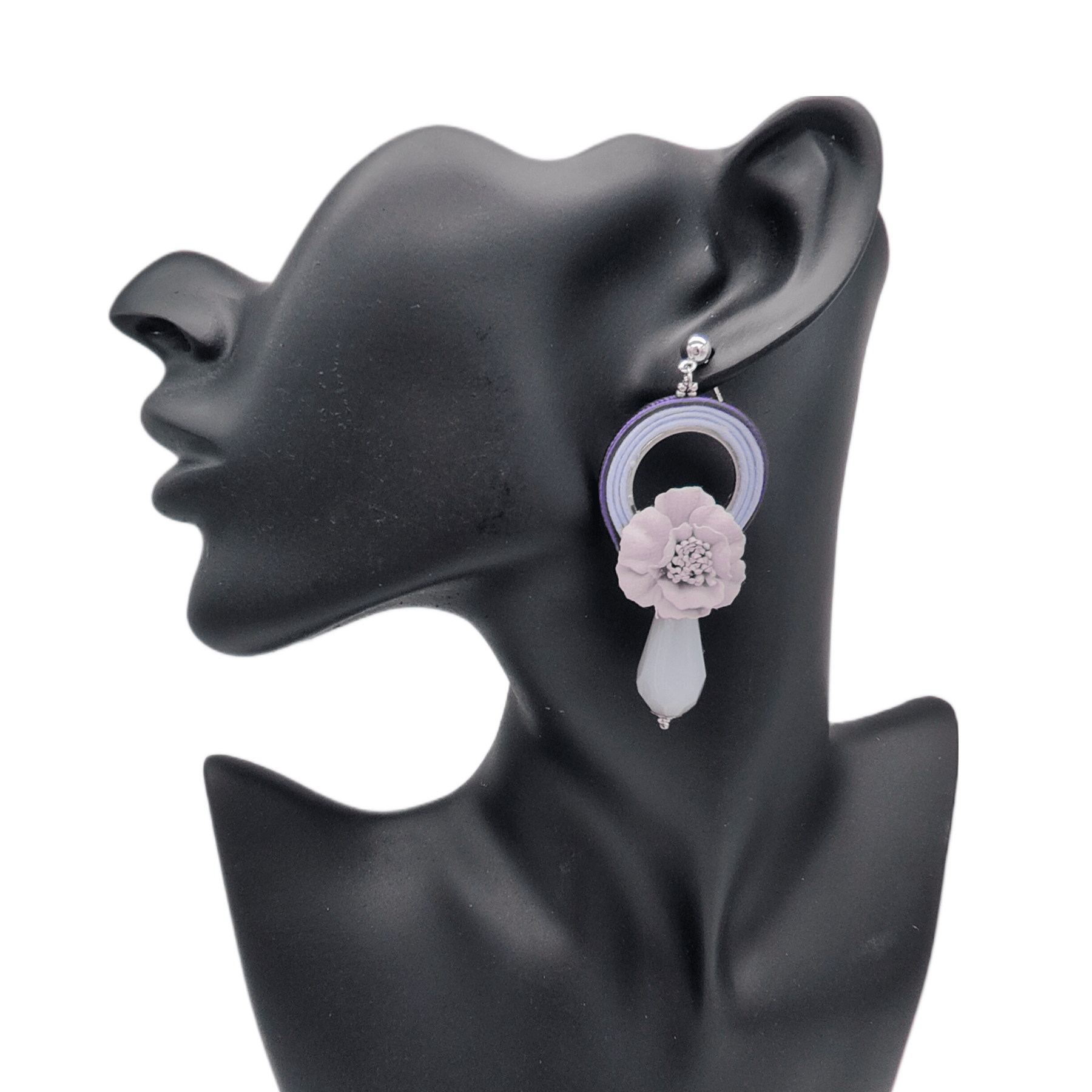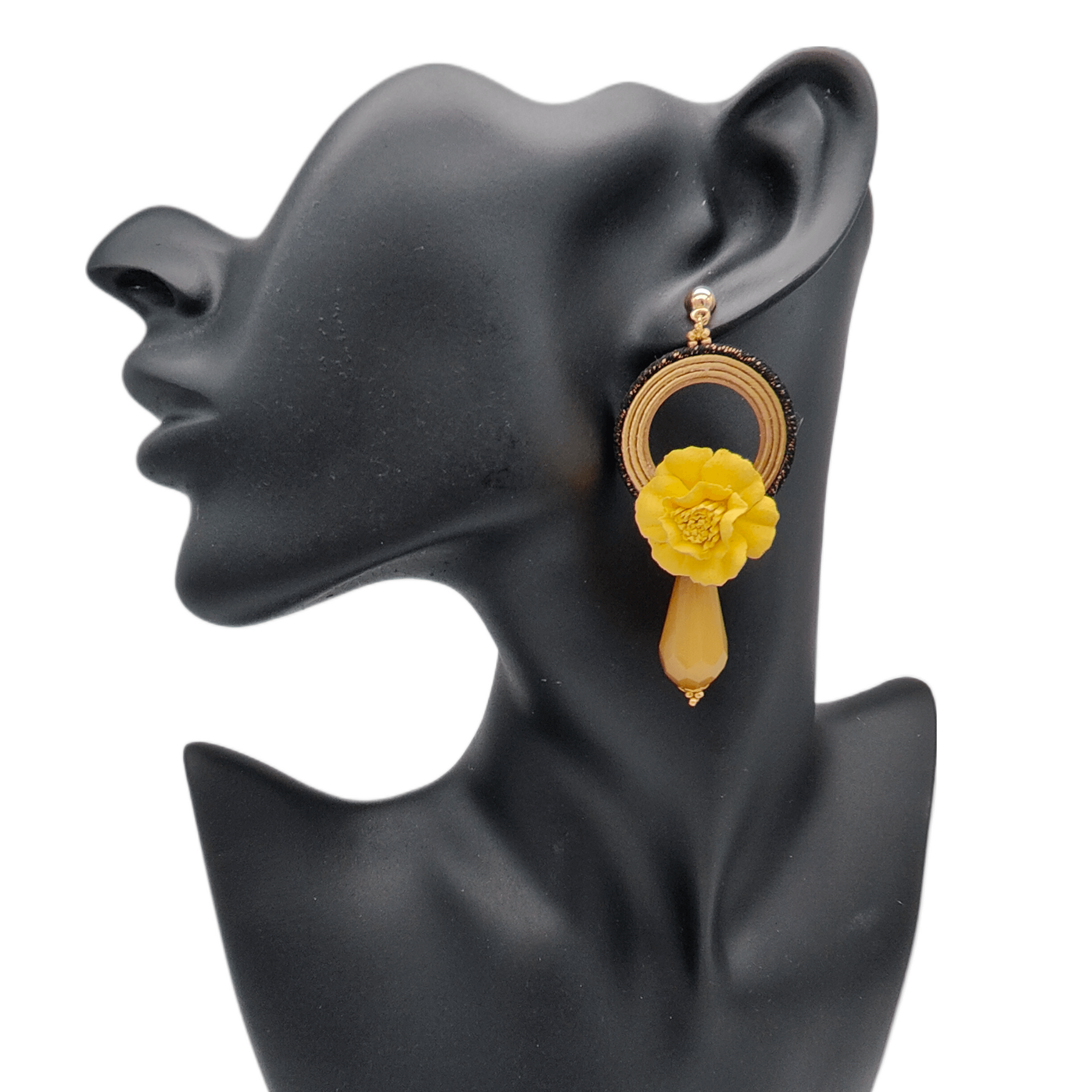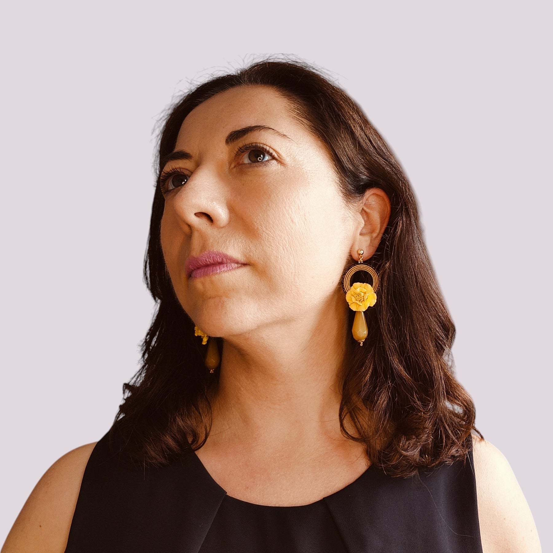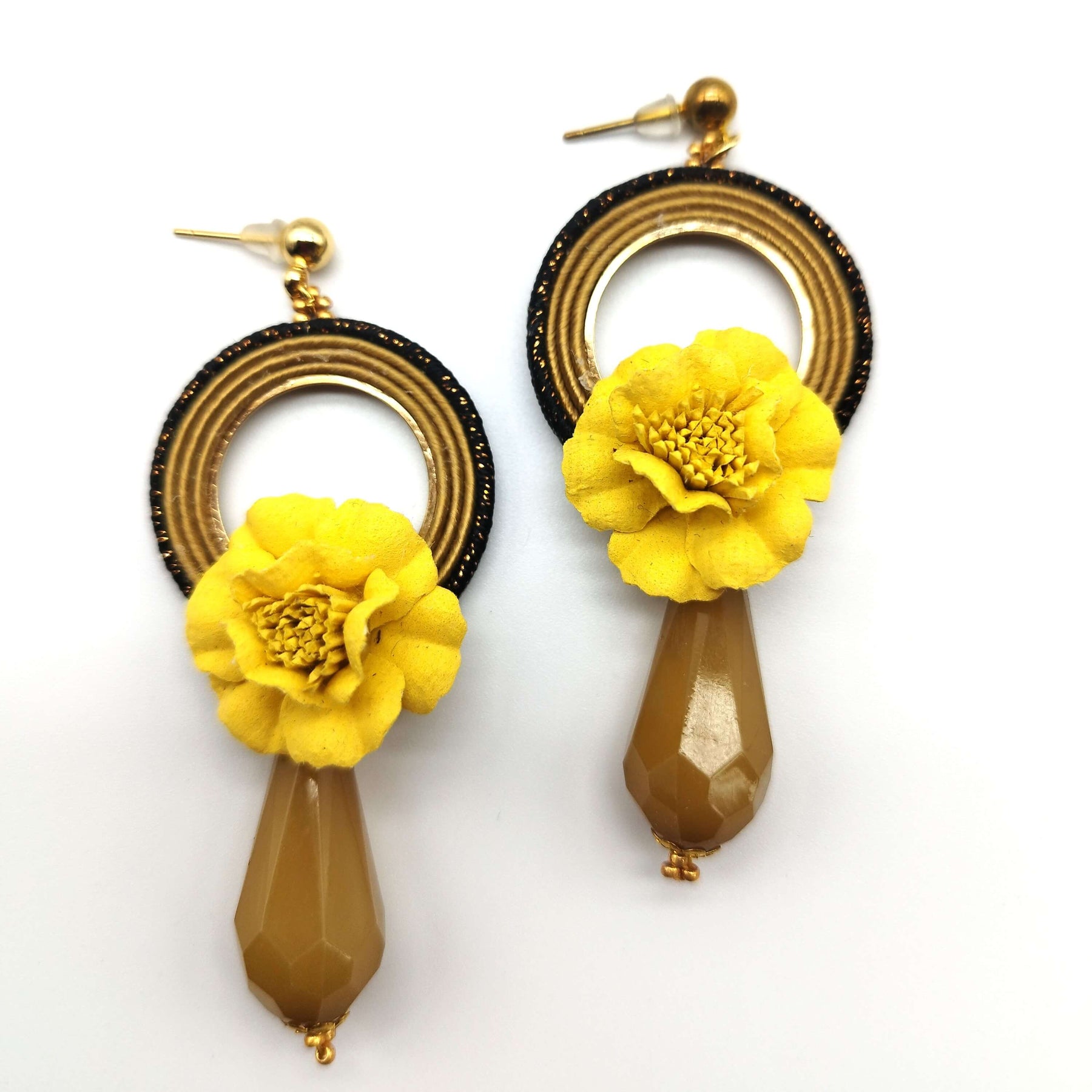 Los pendientes Toscana son unos pendientes largos pero no pesan absolutamente nada. Esto es así por los materiales que utilizamos. Cordón de soutache, una flor en kraft y la gota en resina que le da movimiento a la pieza. Disponibles en varios tonos, elige el que más se adapte a tus estilo!
